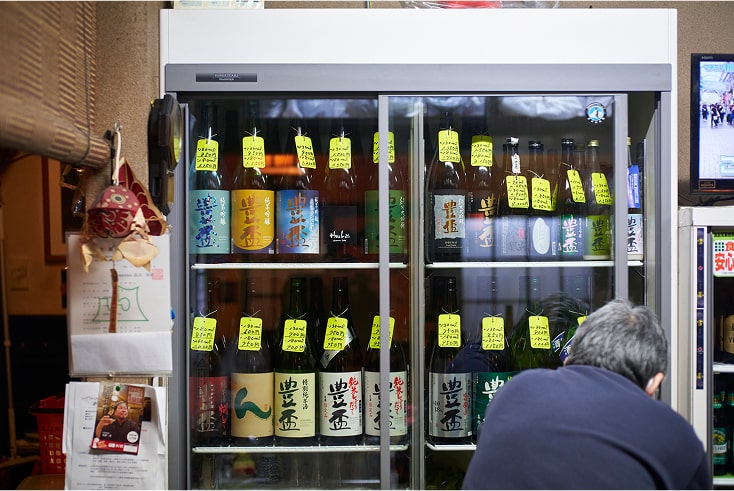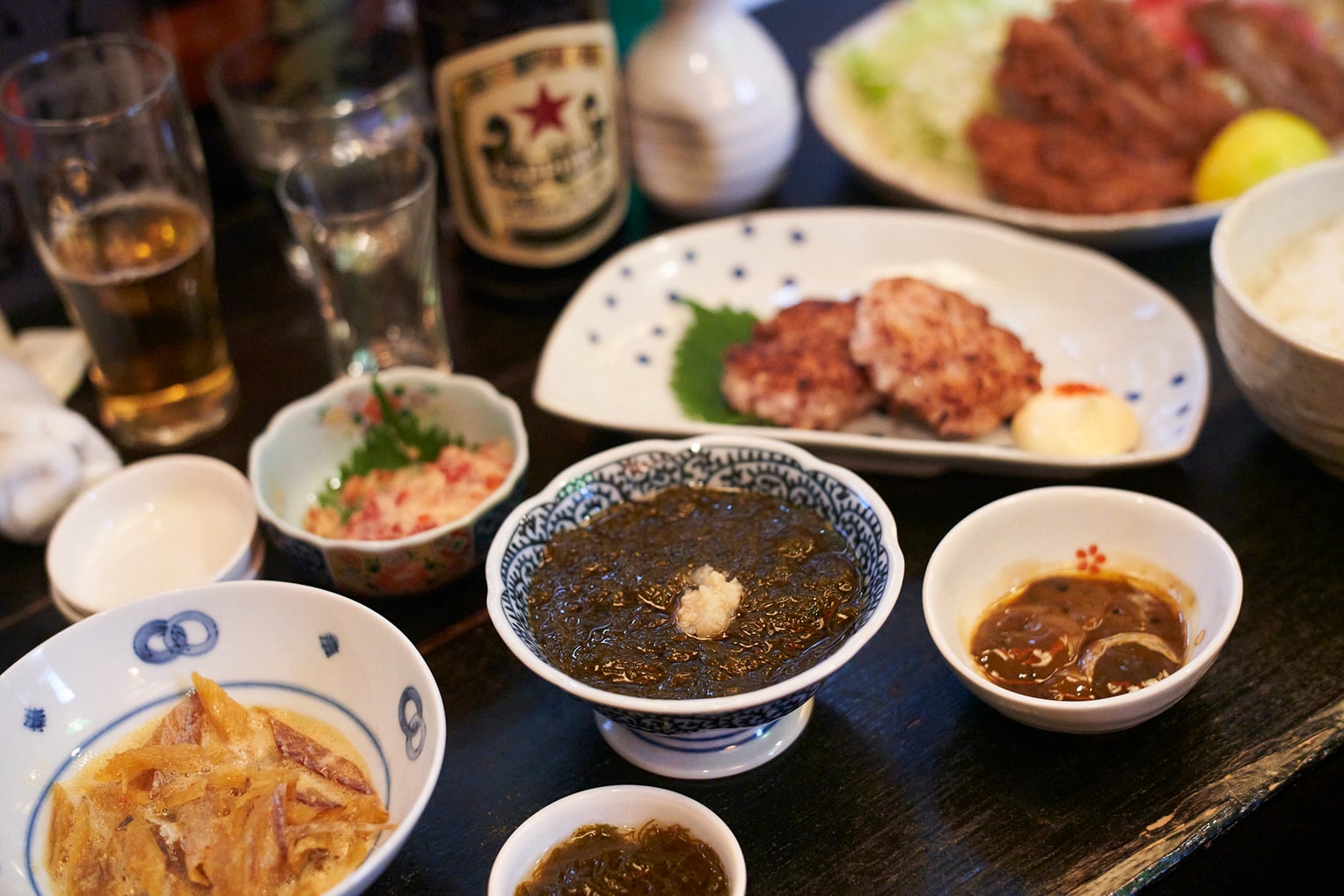 いつも混んでいると聞いたけれど、入れてよかった。冷蔵庫には弘前の地酒・豊盃(ほうはい)がびっしり。店内の黒板には、津軽ならではの料理が並ぶ。イガメンチは、イカとタマネギなどの野菜を焼いたハンバーグのような料理。たらたまは、干し鱈と生卵を和えたおつまみ。ほかにも、筋子の糠漬け、イカのワタ、トンカツなど、何を頼んでもおいしくて白いごはんがすすむ。