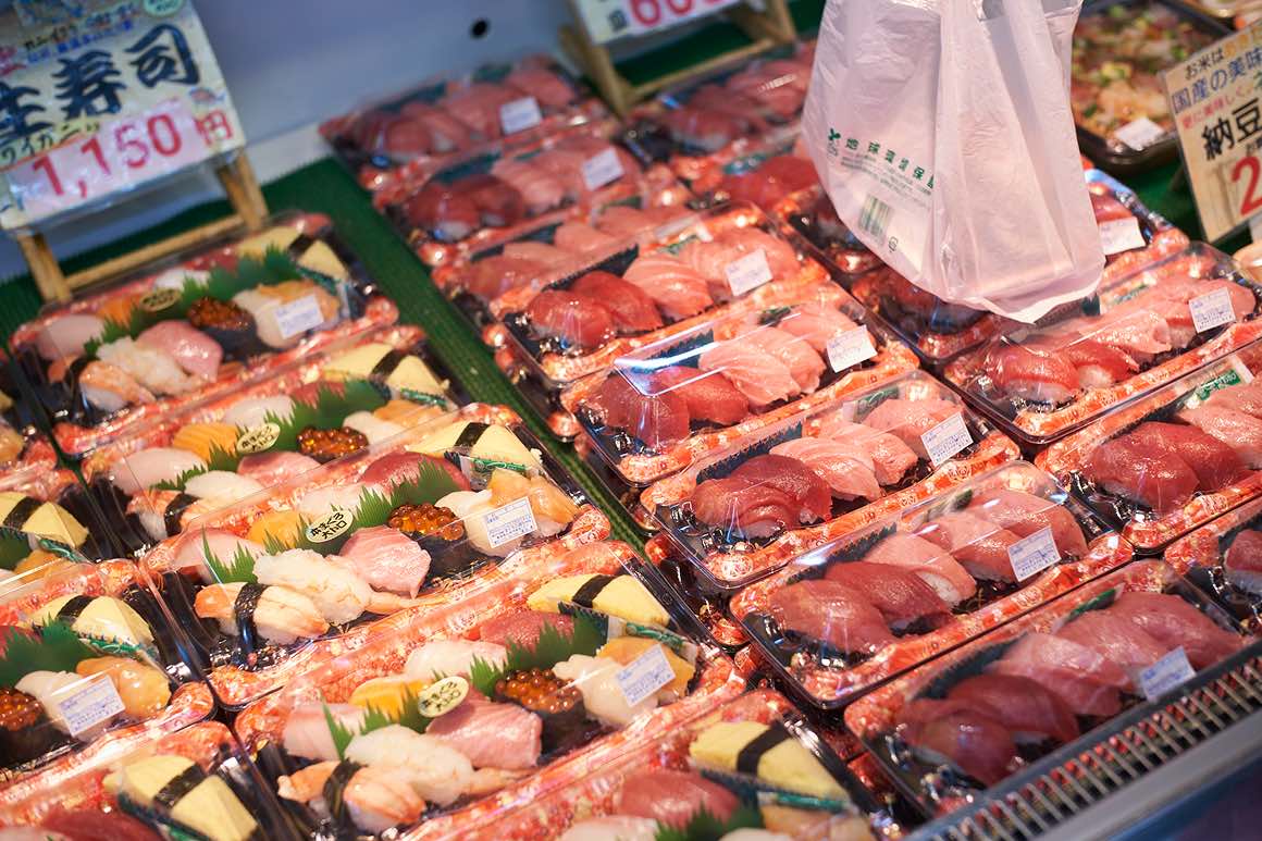 すでに〈まぐろの源ちゃん〉の店先にはお寿司や海鮮丼がびっしりと並んでいる(青森県の魚介といえば、やっぱり下北半島の大間町や深浦町の本マグロ!)。それに弘前のイタリアンレストラン〈オステリア エノテカ ダ・サスィーノ〉の笹森通彰シェフが手がけるラーメン店〈麺屋コルトン〉には朝ラーメンもある。お店の人にひと声かけて、市場内で買ったすじこ巻きを広げてラーメンと一緒に食べる。朝からこんな贅沢が許されるなんて……!