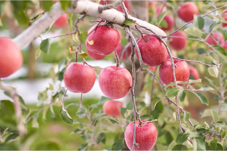標高1,625mを誇る、青森県の最高峰。岩木山一帯には豊かな湧き水があり、山の麓にはリンゴ、サクランボ、トウモロコシ、セリといった畑が広がっている。