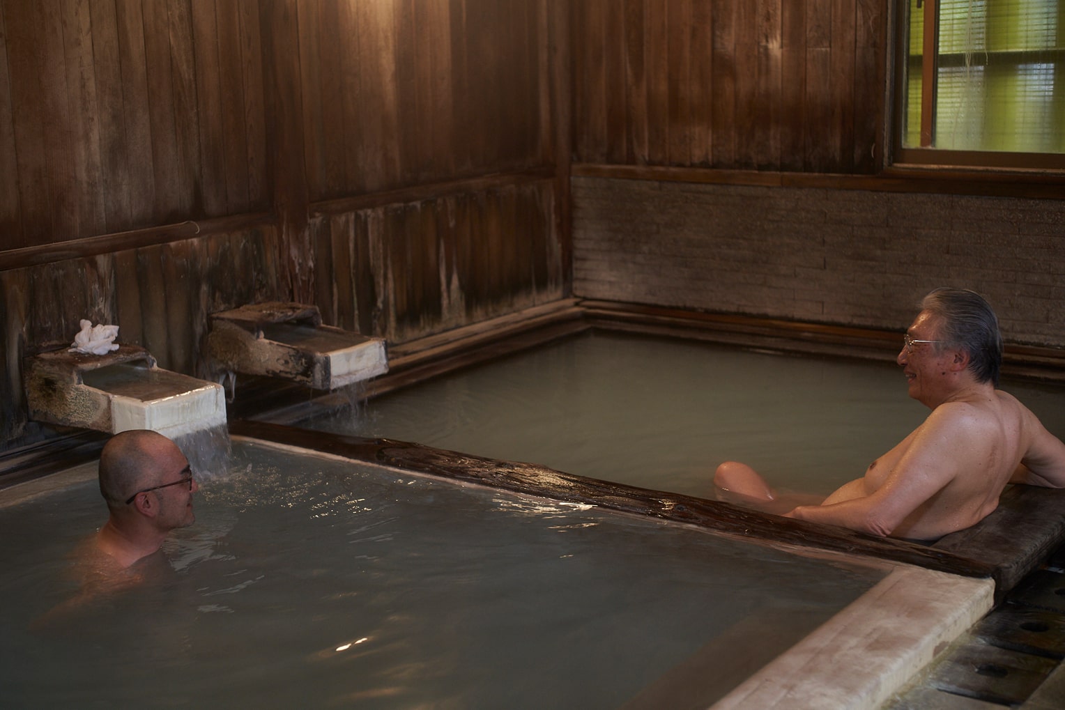 ここは300年以上前からつづく温泉郷で、今は5、6軒ほどの温泉宿が並ぶ落ち着いた町だ。昔は町の中央に共同温泉があり、それを囲うように旅館が軒を連ね、湯治客で賑わっていたという。獄温泉にあった〈小島旅館〉の湯に、ひととき浸かる。碧がかった白く滑らかなにごり湯で、肌のあたりが優しい。浴槽は青森ヒバでできていて年季が入っている。
