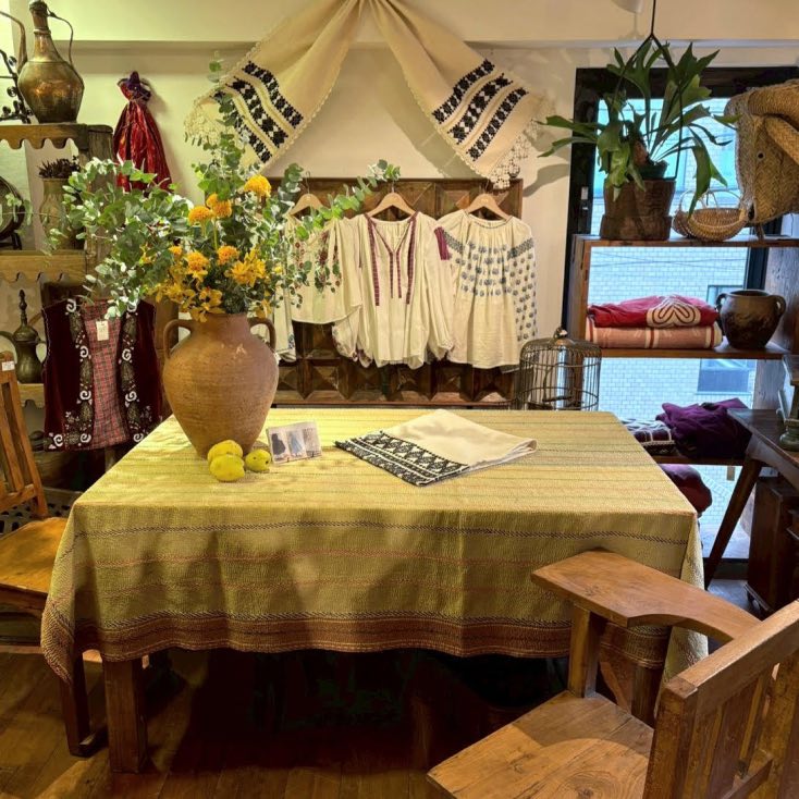 世界各地のアンティーク手工芸品や現代作家の作品を、日々の空間にそっと取り入れる提案をする〈FUCHISO〉。