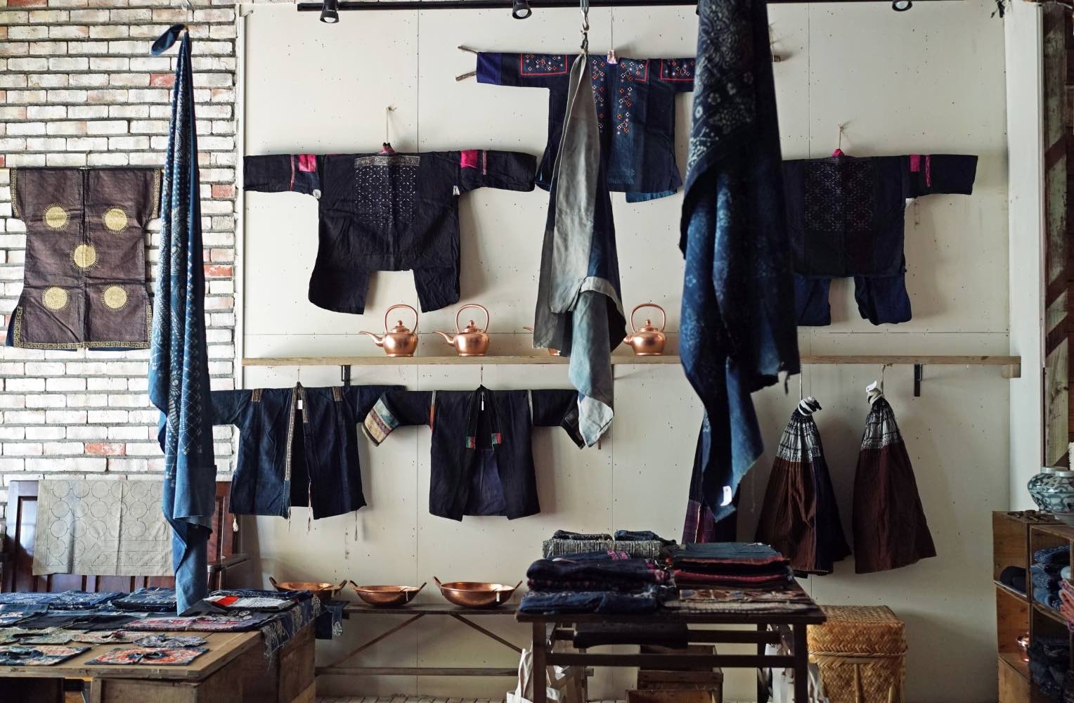 店内には、スペインやインドの綿衣料、布、鉄ものをはじめ、中近東のキリムや民具、東南アジア、中南米、アフリカの雑貨、さらにはスウェーデンのサボまでが並ぶ。