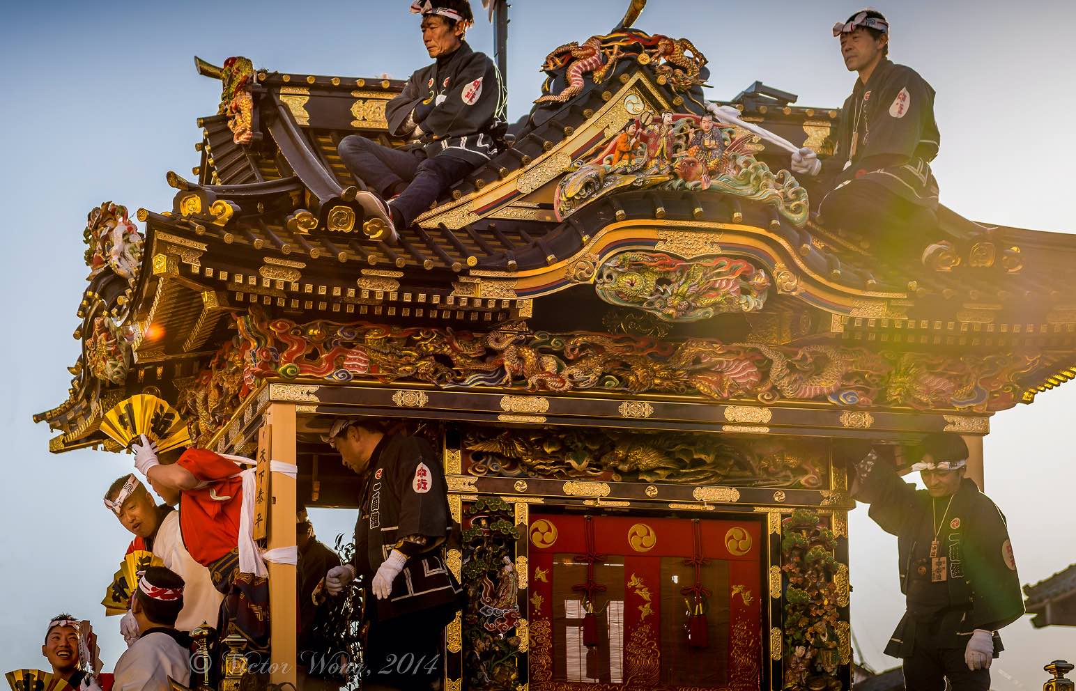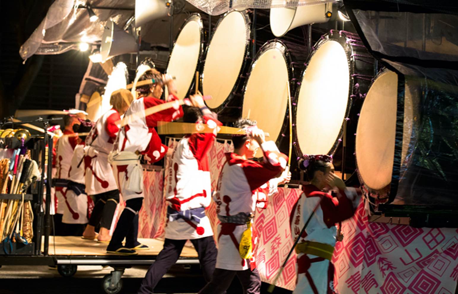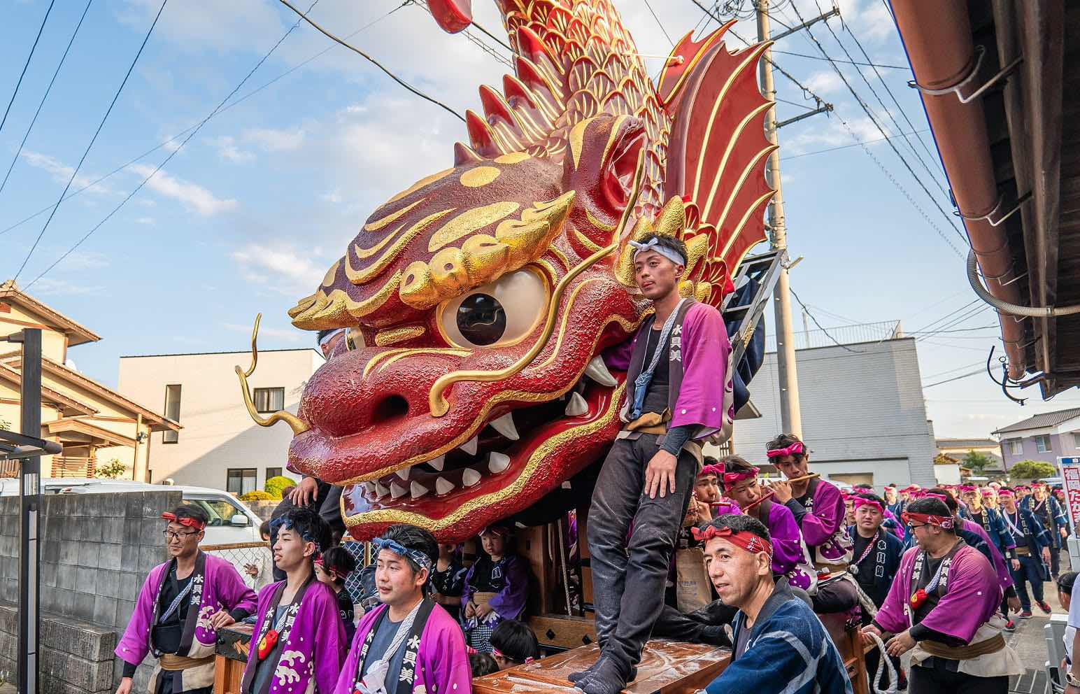平安または鎌倉時代に起源をもつとされ、最大の見せ場「かきくらべ」では、150人余りの男衆が太鼓台を担ぎ上げる迫力の光景が広がる。豪華な刺繍や龍の装飾にも、受け継がれてきた技と誇りが宿る。