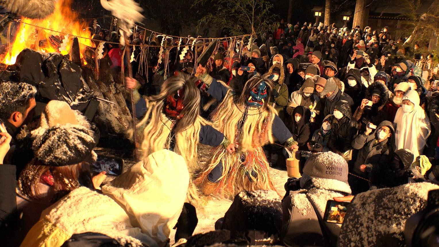 ナマハゲ行事は、秋田県男鹿(おが)で毎年大晦日に行われる伝統民俗行事である。ナマハゲは真山・本山の神々の使者とされ、「怠け者はいねが、泣く子はいねが」と各家庭を巡って悪事を戒め、厄災を祓い、豊作や豊漁を祈る。