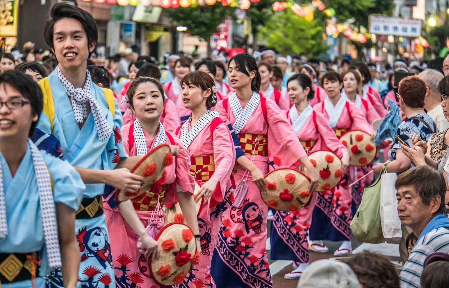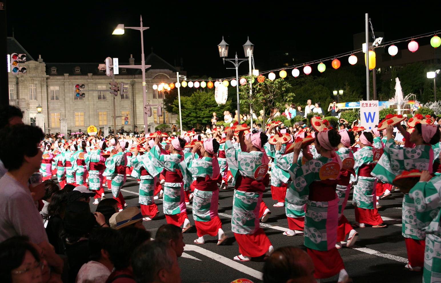 跳ねるように踊る「ハネト」たちが列に加わり、見る者もまた祭りの輪へと引き込まれていく。国の重要無形民俗文化財にも指定される、日本を代表する夏の祭礼だ。