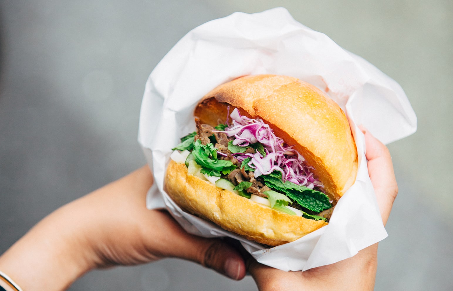 ベトナムのパンといえばやっぱり「バインミー」。19世紀以降、フランスの食文化の影響を受けて誕生したと言われており、フランスパンに肉や野菜、ハーブ、なますなどを挟んだ複雑さが癖になる味わい。〈che 333〉ではオリジナルのバンズを使用し、モダンにアレンジしたバインミーが楽しめます。