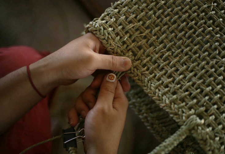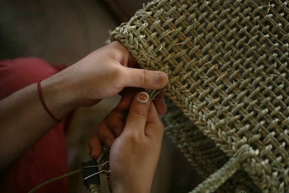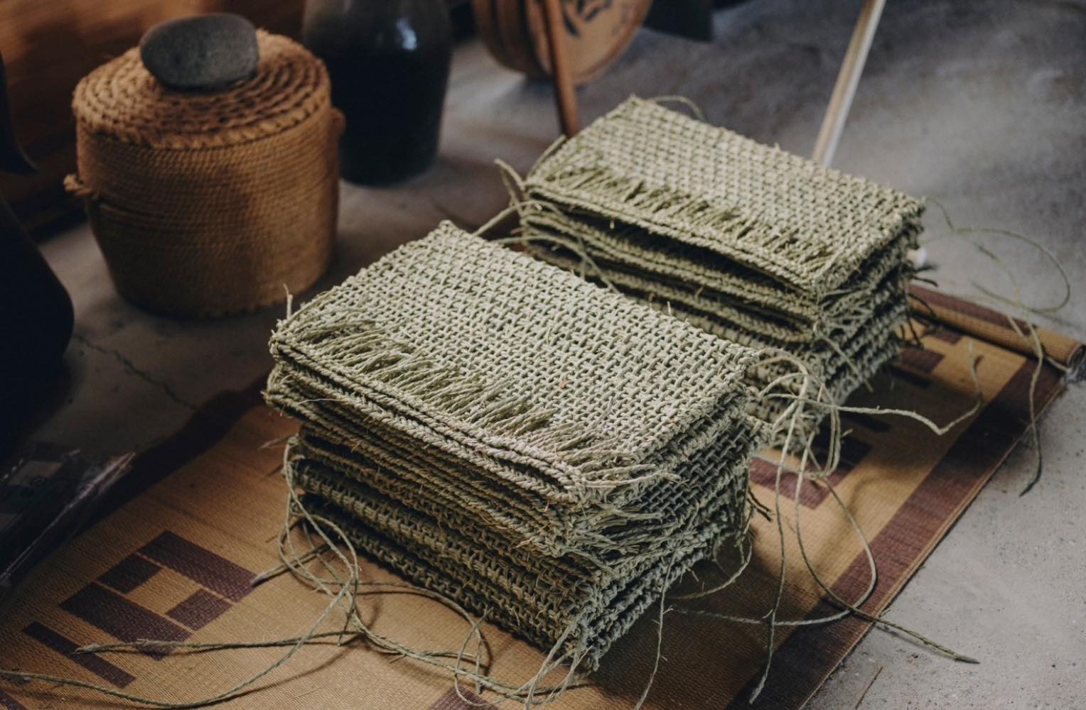 須浪さんは倉敷の伝統産業のイグサの家業を継いで、イグサで手提げカゴや瓶入れのカゴ、鍋敷きをつくっている人だ。