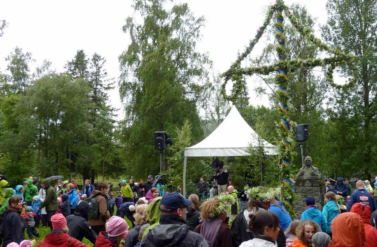 象徴的なのは、花や葉で飾られたメイポール(マイストング)という柱の周りを輪になって踊る習慣。家族や友人が集まり、ジャガイモ、ニシンの酢漬け、イチゴなどを食べたり蒸留酒のスナップスを飲みながら野外で過ごす。自然の恵みに感謝し、長い冬を越えた喜びを分かち合う日であり、スウェーデン人にとってもっとも大切で待ち遠しい祝日の一つ。白夜の光の下、昼から夜まで短い夏を楽しむ。
