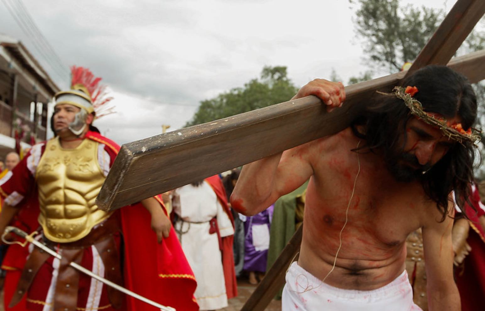 「棕櫚の主日」から「復活祭の日曜日」までつづく公式行事のなかで、もっとも胸を打つのがキリストが亡くなった日に行われる「聖金曜日の行列」だ。独特の衣装に身を包んだ信者たちが十字架を掲げ、歌い、祈りながら、イエスが歩んだ苦難の道(ヴィア・ドロローサ)を進んでいく。
