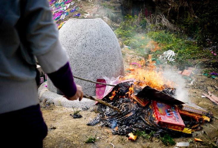 お墓を掃除して、食べ物やお酒をお供えして、線香をあげて、紙のお金を燃やして、祖先を供養する。清明節は「踏青節(とうせいせつ)」とも呼ばれて、春に芽吹いたばかりの青草を踏みながら野山で遊んだり、凧揚げをしたりして、春の訪れを祝う。