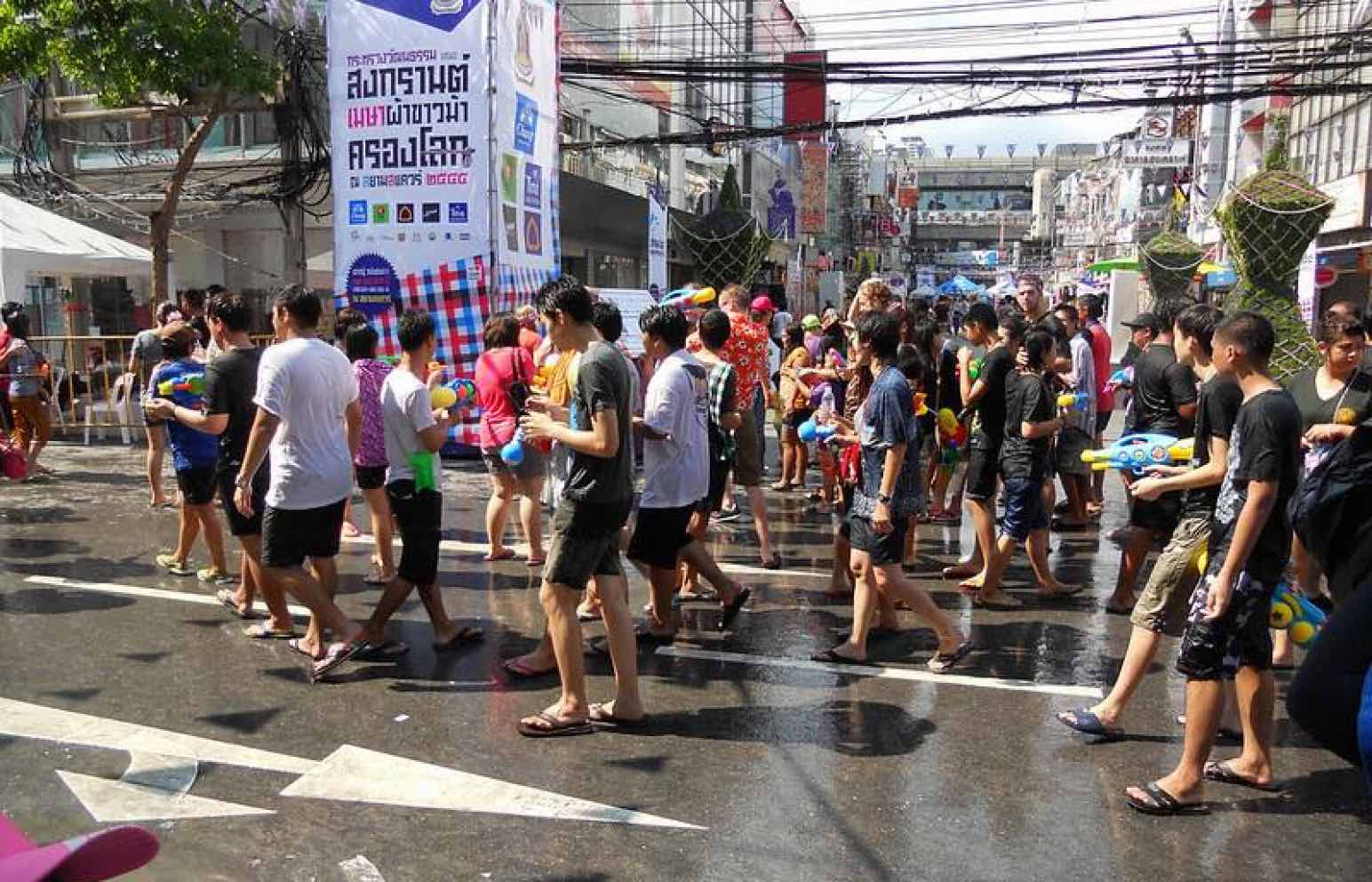 ソンクラーンは、タイの旧正月で新年の始まりを祝う伝統行事。毎年4月13日から15日の3日間にわたり、参加者は水鉄砲やホース、水を入れたバケツを手に、通りを行き交う人びとと水かけ合戦を繰り広げる。バンコクをはじめ各地で催しが行われ、地元の人だけでなく多くの旅行者も参加し、街中びしょ濡れの人びとで賑わう。お祭りの期間中は水をかけられる可能性があるので、街を歩くときは濡れてもよい服装や防水バッグの準備が必須。