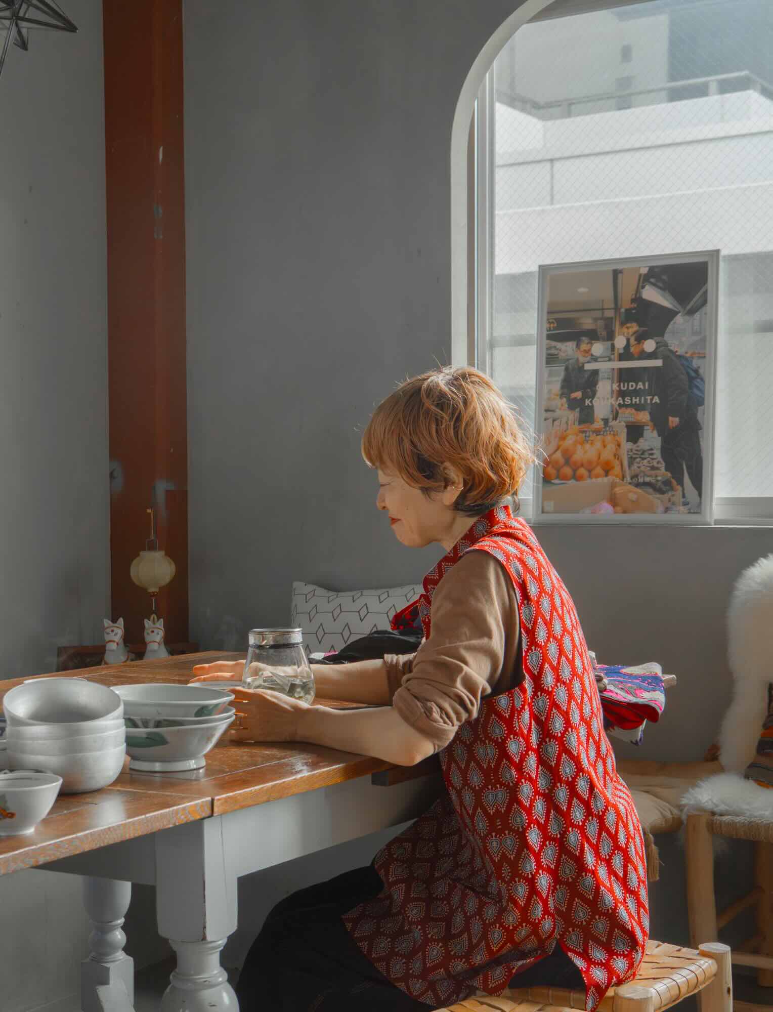 学芸大学駅から歩くこと約5分。道路沿いの建物の2階にひっそりと佇む〈HÅN〉。冬の柔らかな日差しが差し込むなか、無数の器や道具たちが静かに光をまとっていた。