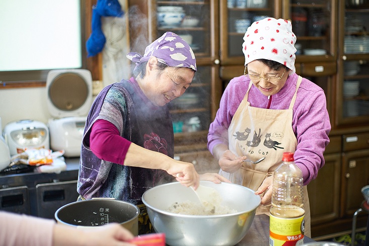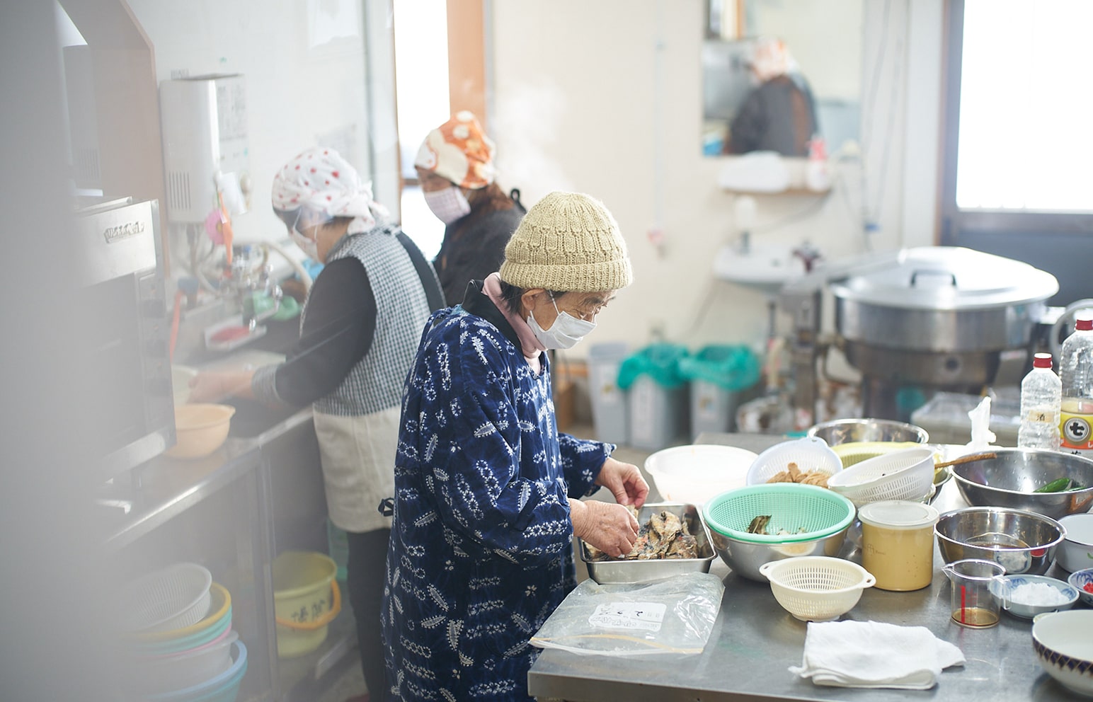 地元のお母さんたちが、次世代に郷土料理を伝えるためにはじまった場。旅行で訪れた人も、電話でやりとりをして双方の都合が合えば、その会にお邪魔して、郷土料理をいただいたり、人数によっては料理を学ぶことができる。