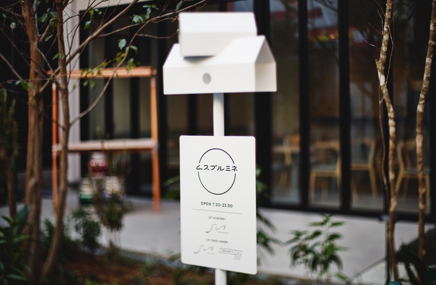 ムスブルミネは大宮駅東口(北)から徒歩1分という駅前ながら、2階建てに抑えた低層なつくり。ここにSLBカンパニーが手がけるカフェ〈SLB CAFE〉とレストラン〈SLB THE DINING〉、そしてオーガニックショップ〈ORGANIC&CO.〉が、同じ屋根の下に集う。