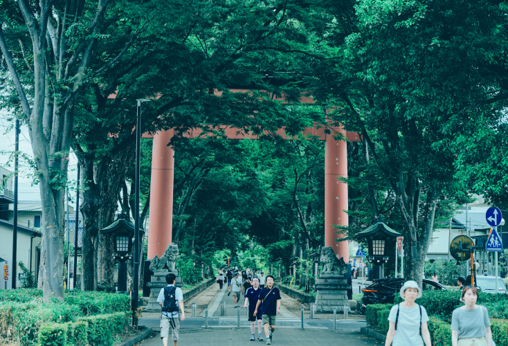 夏は涼しくて、秋は葉っぱが色づいて、街中にいても季節を感じられる場所ですね。建物も参道の並木も、古くからここにあるという感じがして、駅前とはまた違う時間が流れている気がしますね。
