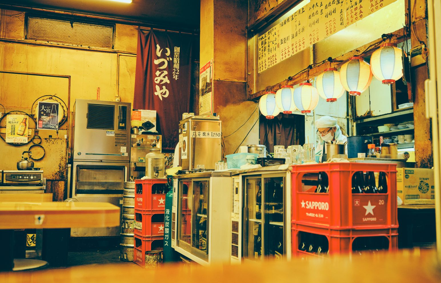 「BEAMSの大宮スタッフはみんなこのお店が大好きで、スタッフ同士でよく足を運ぶんです。私のお気に入りは、モツ煮、ポテサラ、ハムカツ、それにタコブツやマグロブツといったお刺身もぜひ頼んでみてほしい」と話す清野さん。1947年創業の〈いづみや〉は、大宮が誇る老舗大衆酒場。平日の昼間でも満席になるほど活気が溢れていて、地域の人たちに愛されていることがよくわかる。10〜22時の通し営業で、夜になるほど混み合うので早めの時間帯に訪れるのがおすすめ。