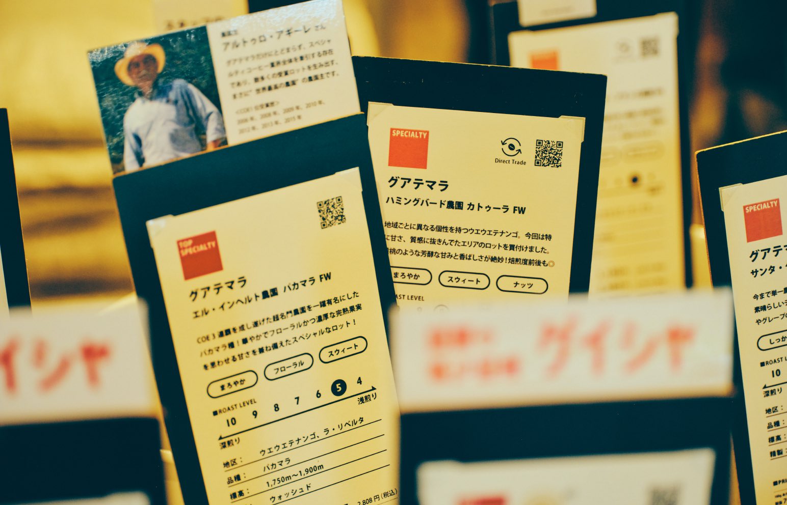 「Direct Trade」マークがある豆は、オーナーが直接コーヒー農園を訪れて買いつけしているもの。