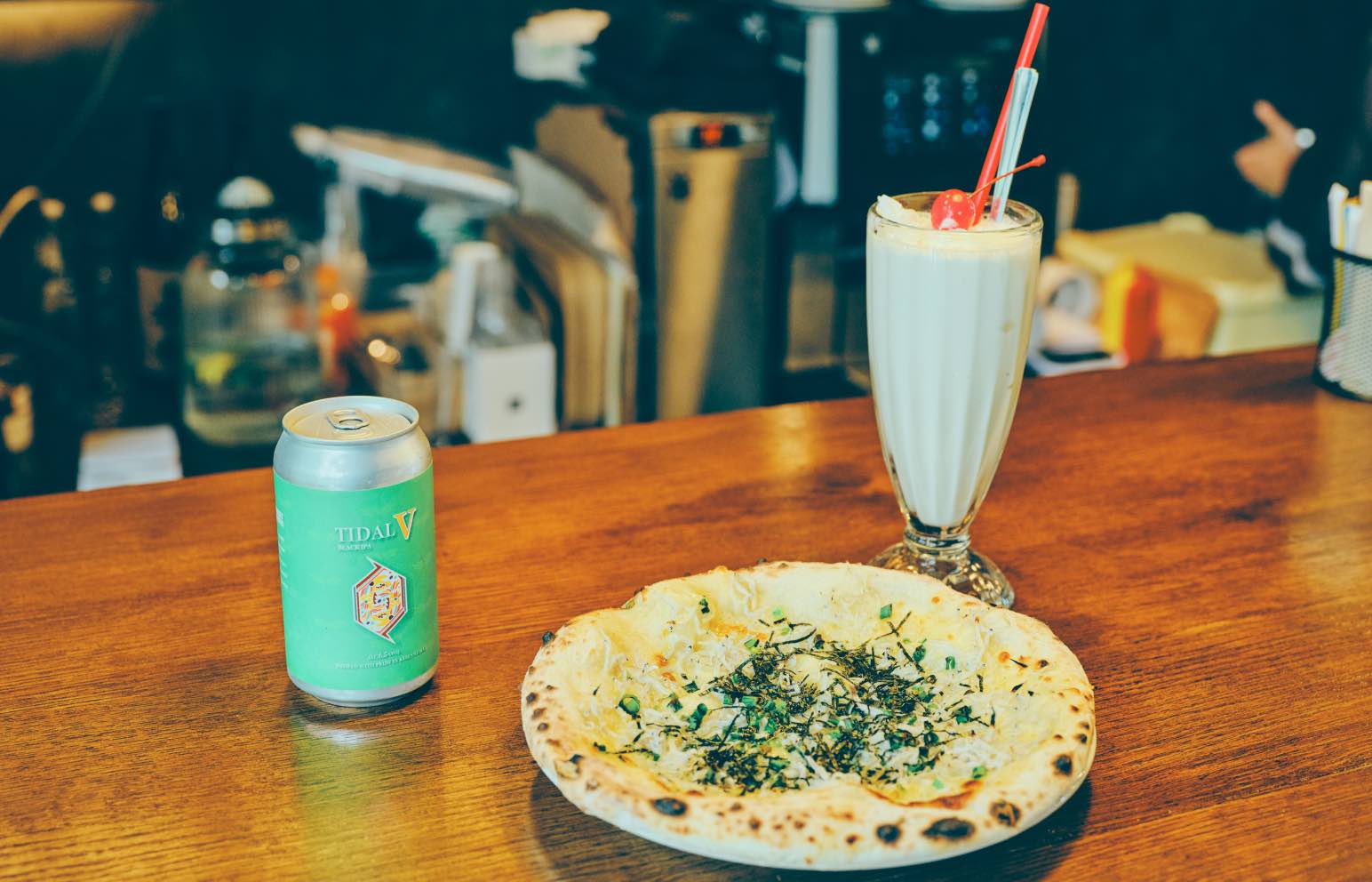 ピザ、クラフトビール、バニラシェイクと、アメリカのダイナーのようなフードメニューで、映画の前後に食べたくなるものばかり。
