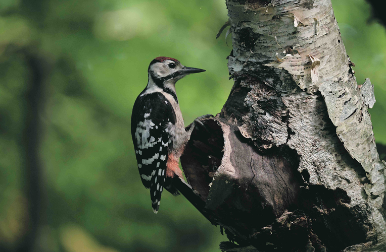 利尻山北麓野営場の森で見かけたアカゲラ。同じキツツキ科のクマゲラも生息している。
