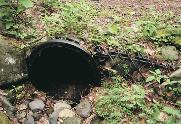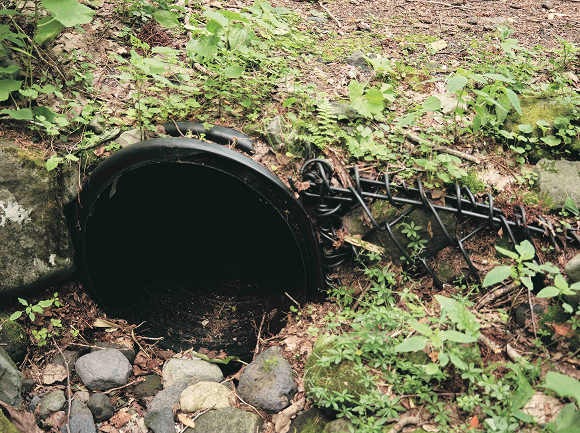 利尻山の登山道。火山性で崩れやすい地質のため、登山道のように人通りの多い場所は、排水路などに使われるコルゲート管で補強されている。
