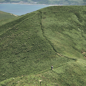 稚内港からフェリーに乗り込んで1時間半ほど。船内アナウンスを聞いて、2等室で雑魚寝していた体をのそりと起こす。フェリーの窓から、やさしい曲線を描く緑の小高い丘と、穏やかな青い海が見える。絵本にでてくる遠い異国の世界みたい。