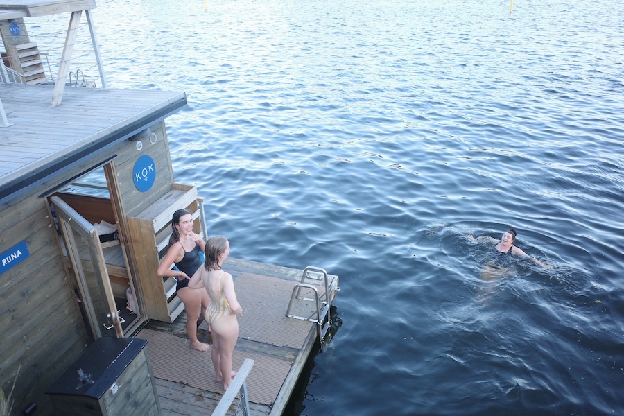 サウナを終えた若者たちが、ためらいもなく海へ飛び込んでいく。すぐ横はふつうの道路で、その向こうには美術館。仕事へ向かう人や、デート中のカップルが行き交うすぐそばで(そしてわたしの横で)、サウナと日常が同じ地平にあった。
