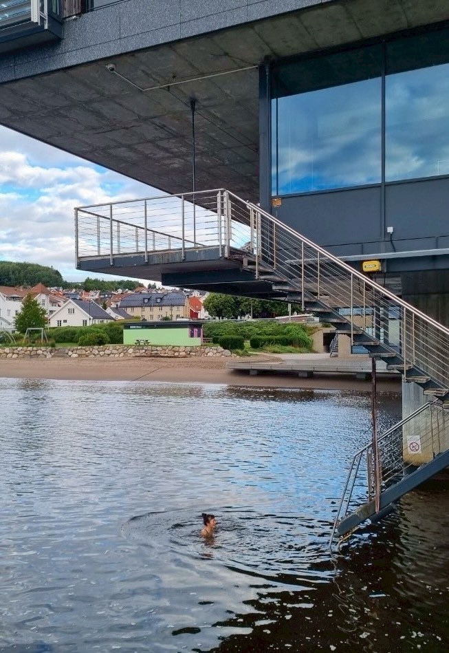 サウナの横にある、海へ直結する階段を降りていく。昨日まではトマソン建築だったけど、今朝は水風呂(海)へと導く、意味のある建築になっていた。