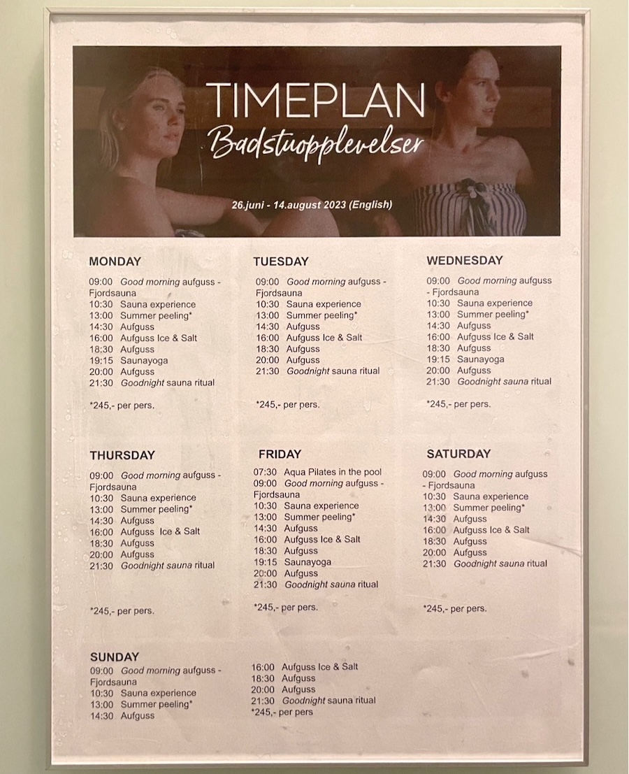ここには10種類のサウナがあり、朝から夜まで多彩なサウナプログラムが用意されている。