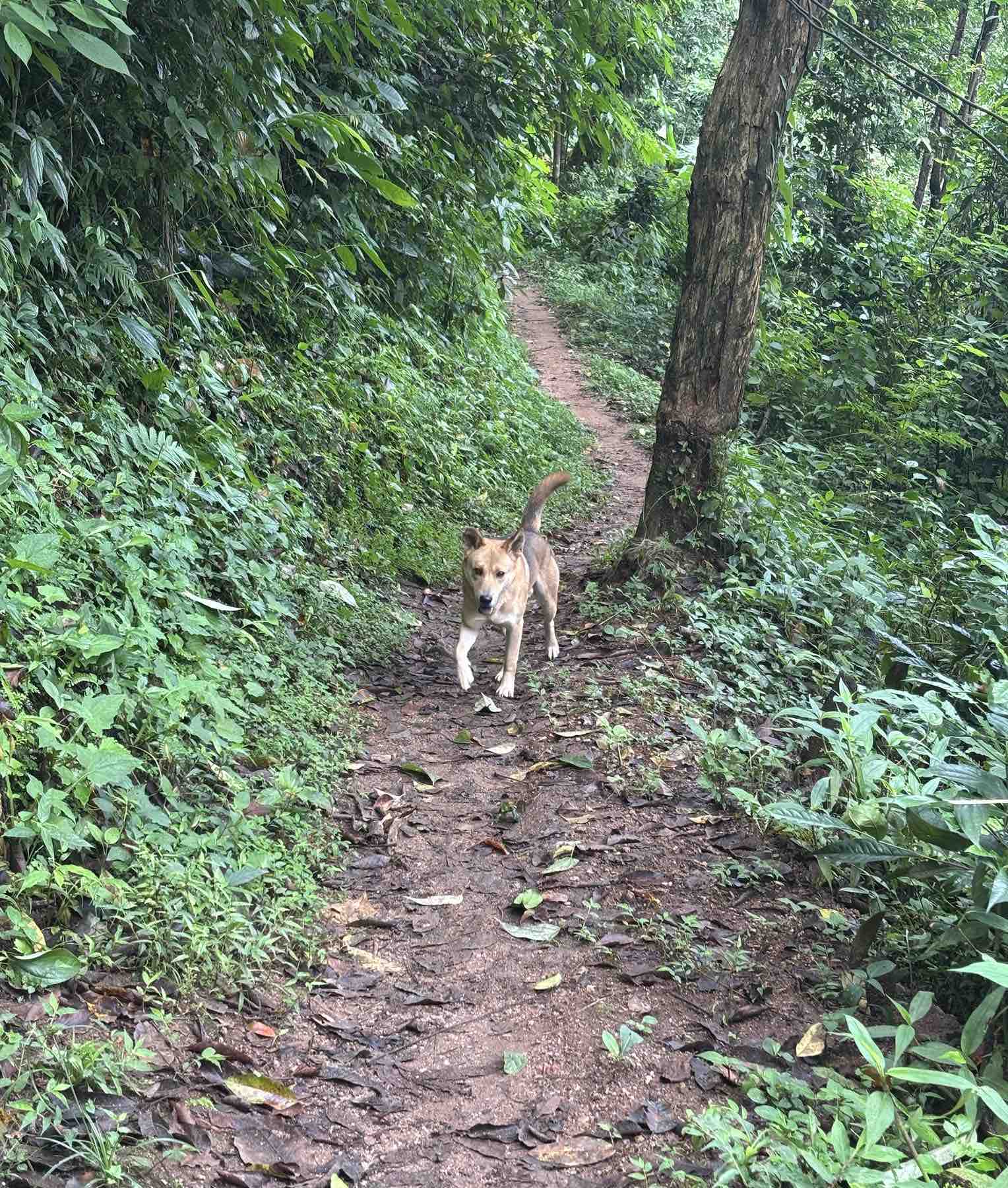 テナガザルの森を管理する方の愛犬。森を自由に先導してくれるその姿から、街で飼われる犬にはない逞しさを感じる。