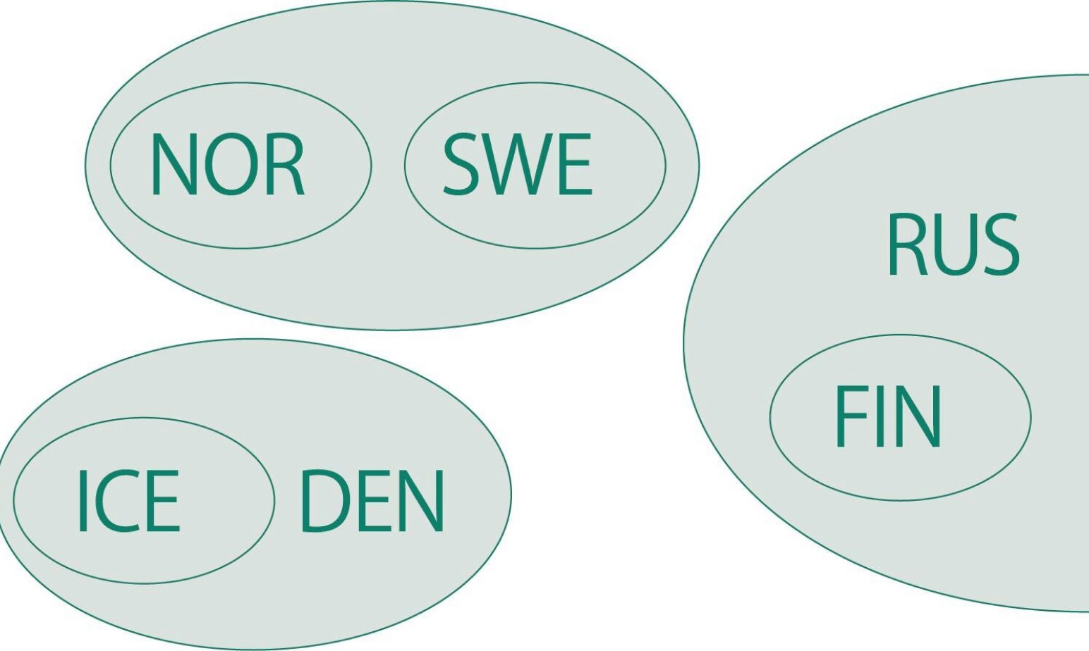 スカンディナビア半島の2カ国とその先のデンマーク、ボスニア湾をともに囲むフィンランド、北大西洋のアイスランド。スウェーデンは大西洋に面した国と比べ水産業は弱いが、交通の要衝として、また農業でも栄えた。ドイツやロシアのような直接的な脅威と地続きでなく、中立国として成立しやすい。