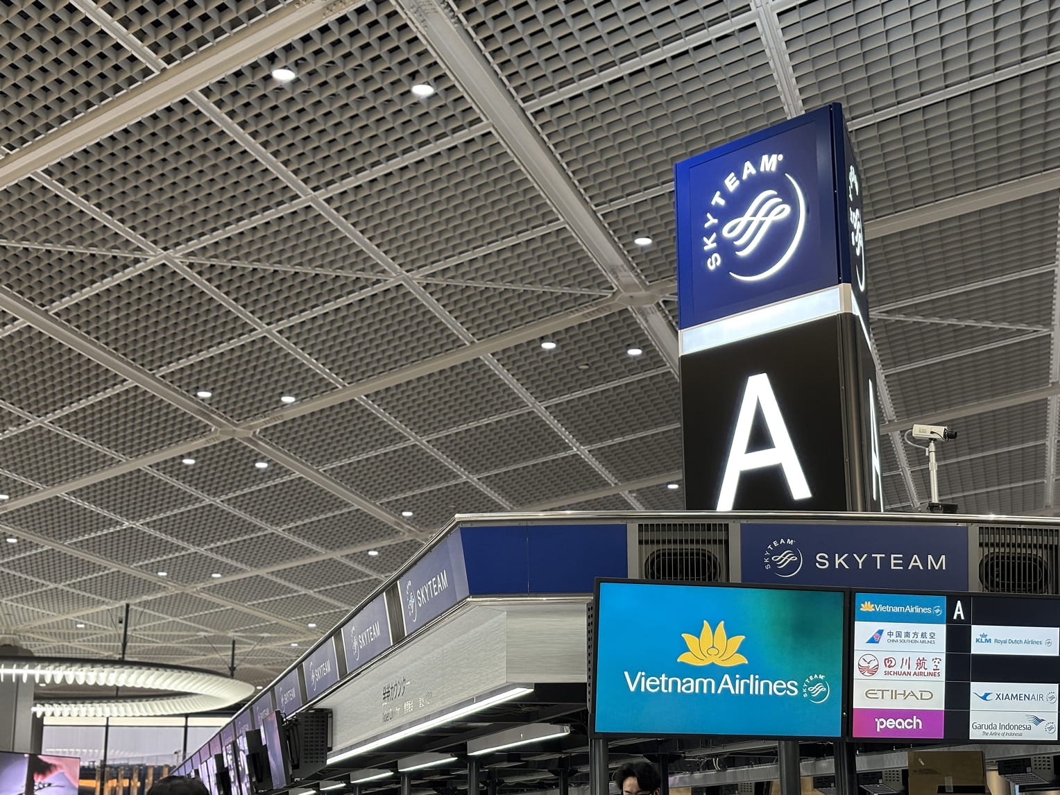 ベトナム航空の成田9:30発→ハノイ行きの便に乗るべく、朝7:00、成田空港第1ターミナルに集合。前日にオンラインチェックインを済ませ、空港カウンターで預け荷物を渡して、搭乗券を発行。保安検査場を無事通過。やれやれ今回は無事にベトナムに行けそうだ。