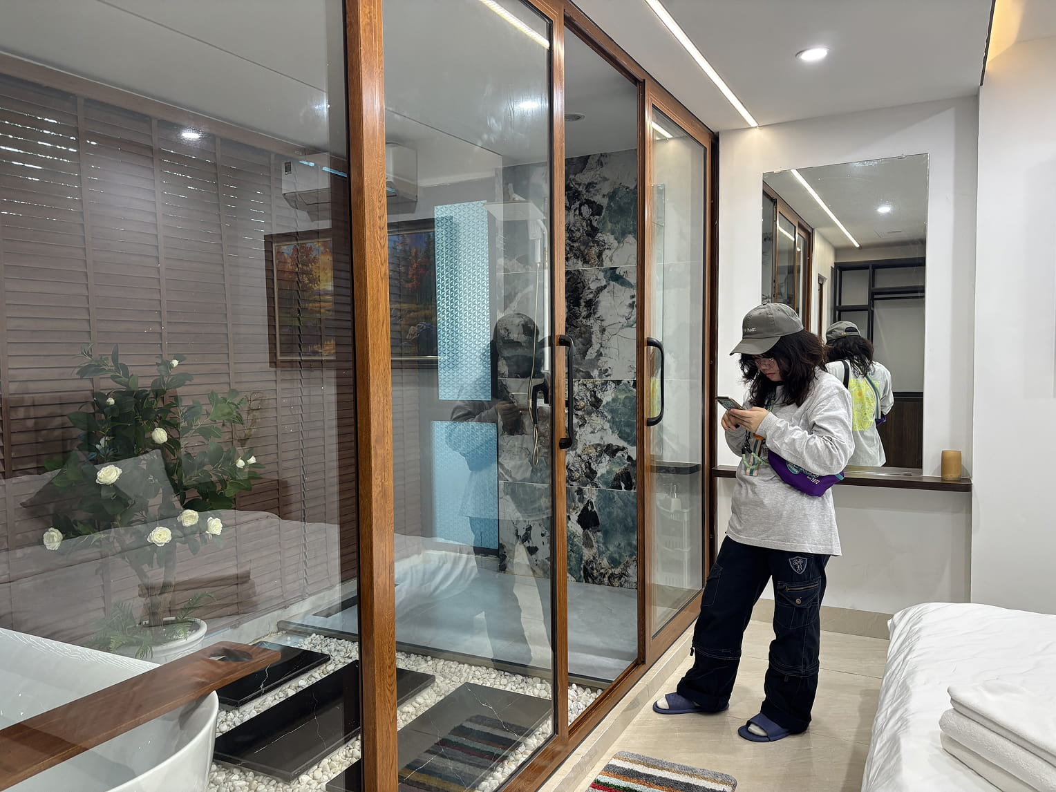 部屋はこんな感じ。じゃんけんで一番いい部屋をゲットした磯部。