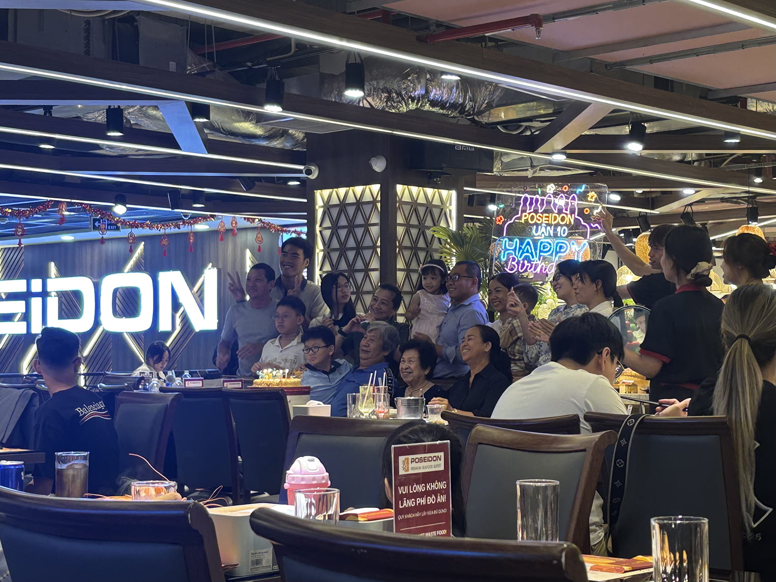 お店で誕生日を祝うベトナムの家族。おばあちゃんから子供まで大集合で楽しそう。ベトナムの人は家族をとても大切にしていて、大家族での食事風景を目にすることが多い。