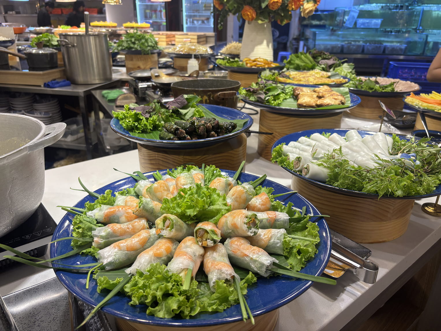 ホーチミン滞在も終盤。なのに、ベトナム料理はまったく食べ飽きる気配がない。フォーは何度でも食べたいけれど、せっかくならほかの味にも挑戦したい。そんな欲張りな気持ちをまるっと受け止めてくれるのが、ベトナムのビュッフェレストラン〈Buffet Poseidon〉だ。