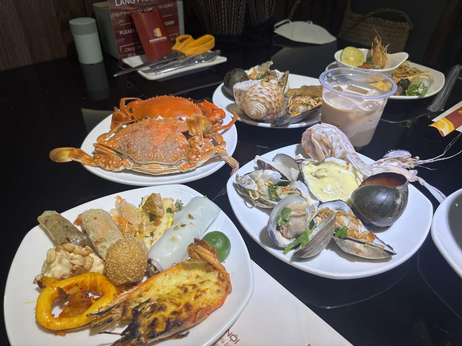 カニと大きめの貝を主役に、ベトナム料理もバランスよくセレクト。ただ、盛りつけたはいいものの、このカニどうやって食べるんだ?