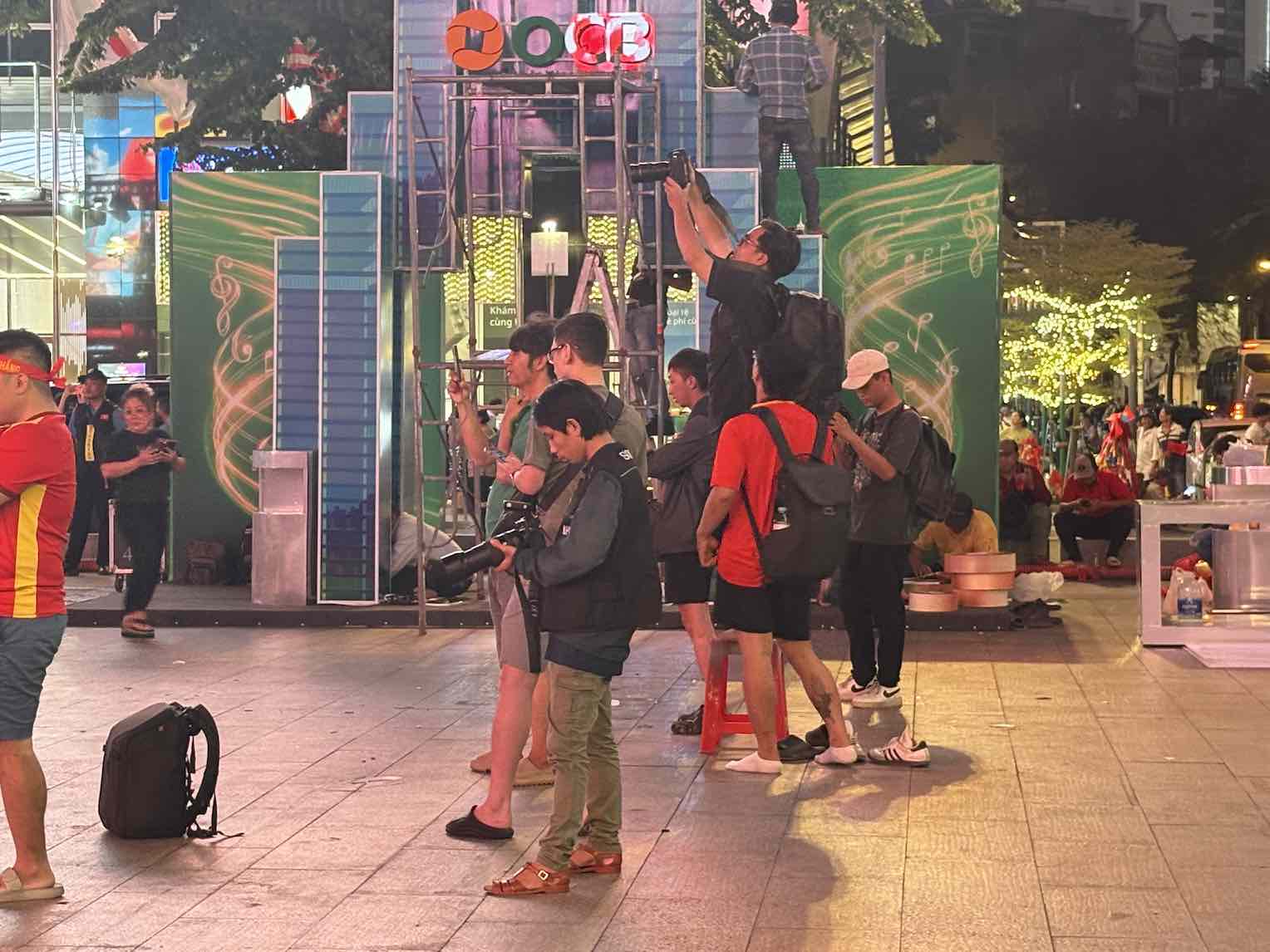 ベトナムコールに合わせて国旗を振りながらふと振り向くと、さらに大勢の人が集まっていた。欧米からの旅行客とおぼしき人たちもちらほら。みんなの表情が試合前の高揚感に包まれている。ああ、サッカー観戦っていいなあ。