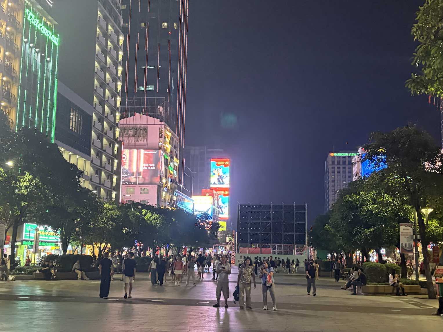 グエンフエ通り。奥に見えるのがパブリックビューイングのスクリーンの裏側。