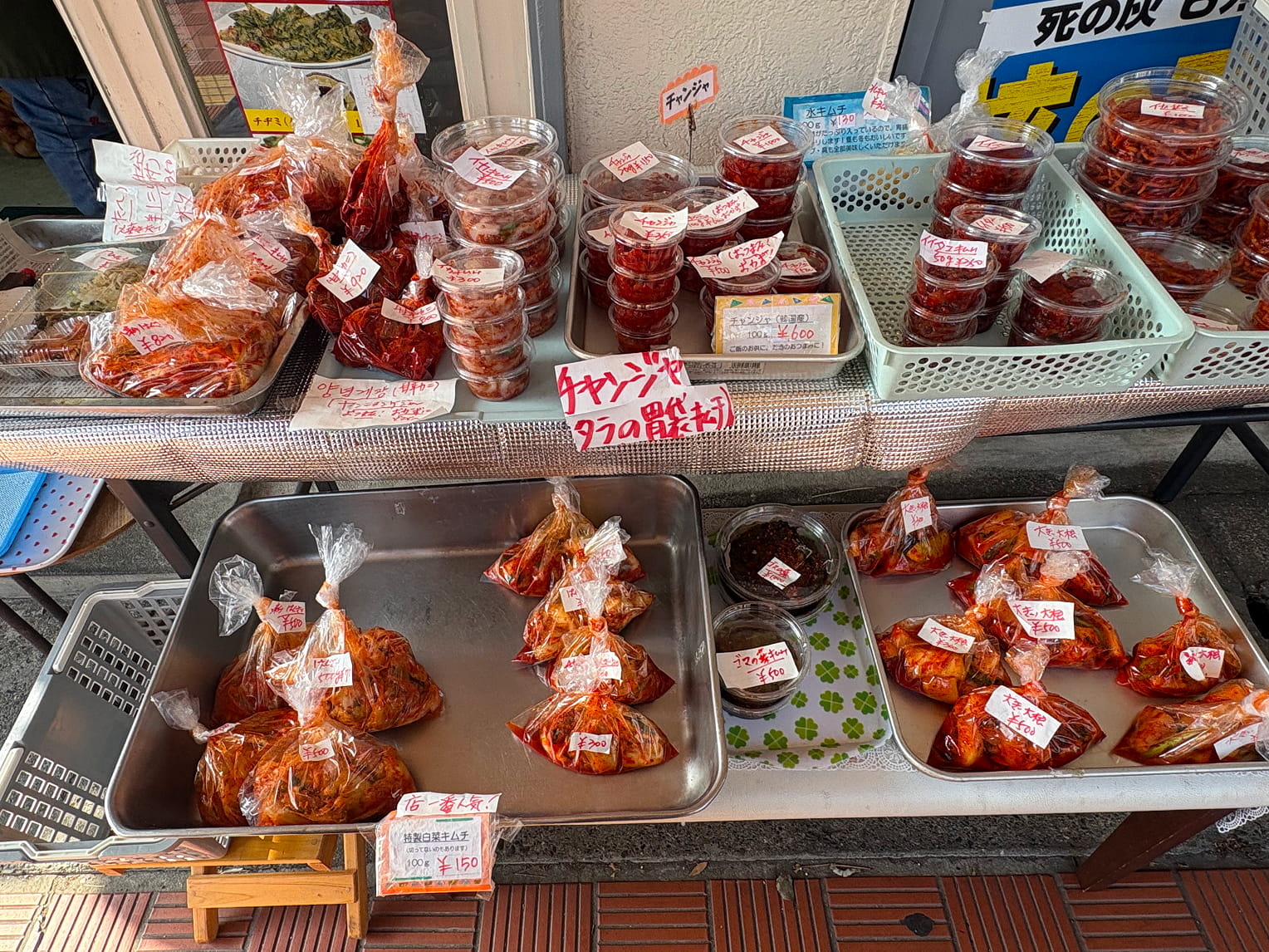 営業しているお店では、韓国産のインスタントラーメン、量り売りの粉唐辛子、手作りのキムチ、どことなく韓国風の衣料品など、いろいろなものを売っている。