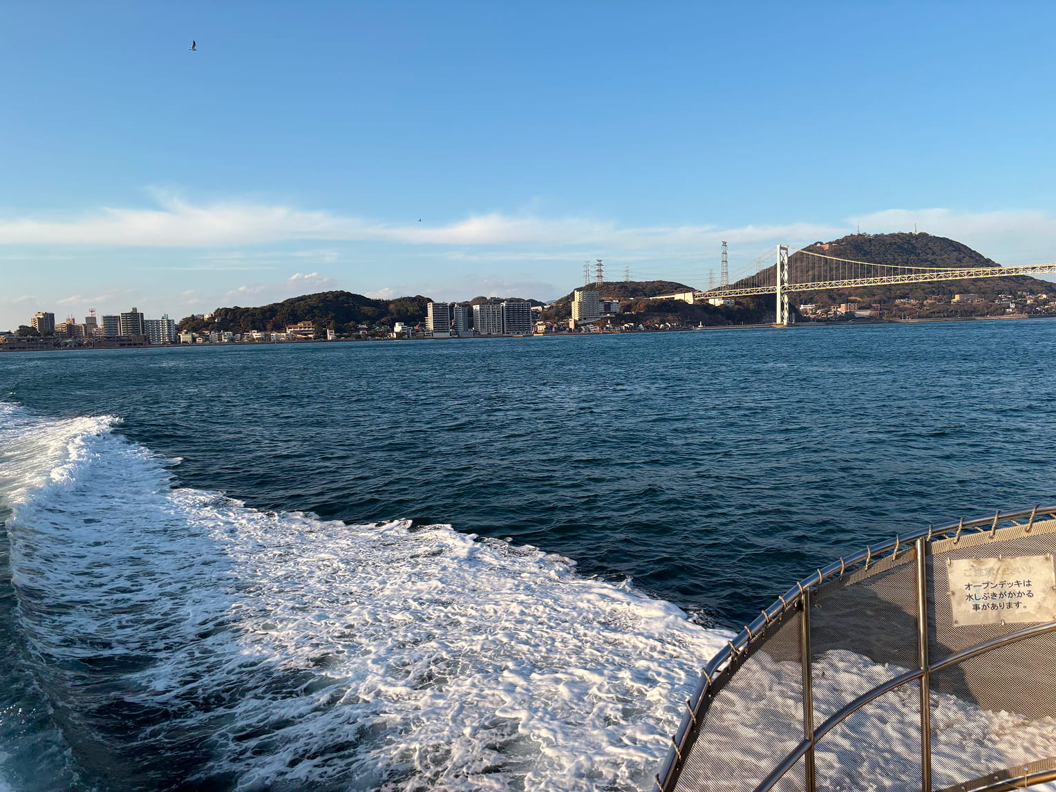 本州と九州を結ぶ関門橋が見える。