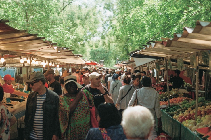 公園に着くと田舎のピクニックのような光景が広がっていた。手土産は、朝、市場で買った赤いグロゼイユ(スグリの実)。夏にだけ出回る、ちょっと酸っぱい小さな果実だ。それをつまみながら、いいちこパーソンをひと口。爽やかな香りがふっと広がる。グラスを重ねるうちに、恋の話から最近の政治論争、来年のバカンスの予定まで、会話はどんどん転がっていく。気づけば、夜がゆっくりと落ちてきていた。もう帰ろうか。
