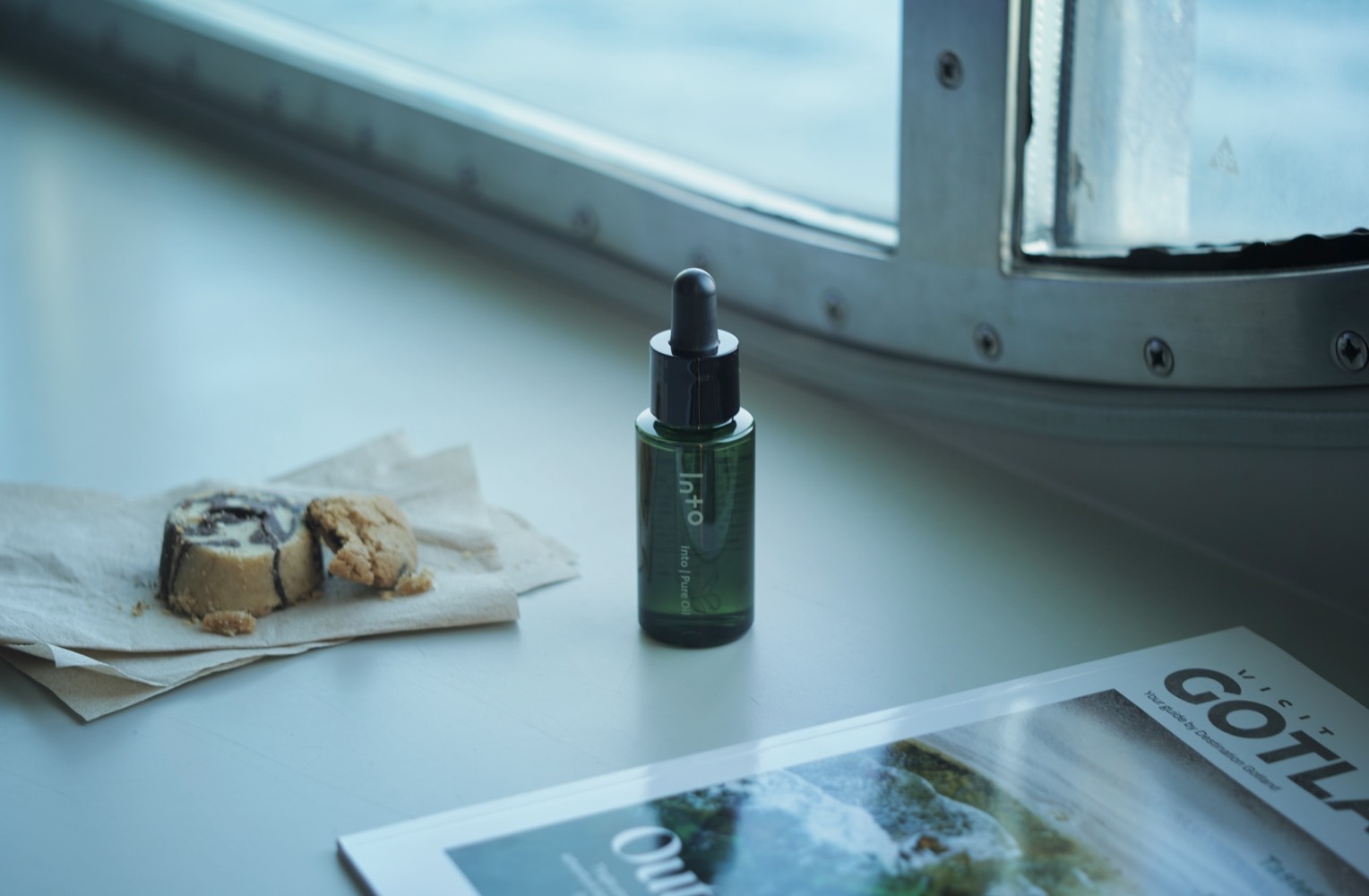 まだふわふわとしている。セーデルマルム島にある、船を改装して作られた船上ホステルの二段ベッドで3泊した結果、地上でもまだ揺れている感覚が残っていた。夏から秋へと移り変わる、空気のわずかな渇きを感じる。乾いた船室の中でも、〈Into〉のピュアオイルが私の潤いを守ってくれた。オープンデッキで太陽礼拝をしていた女性と目が合って、一緒にどうかと誘われた気がした。強いコーヒーで目を覚ましたあとは、ストックホルムを散歩した。