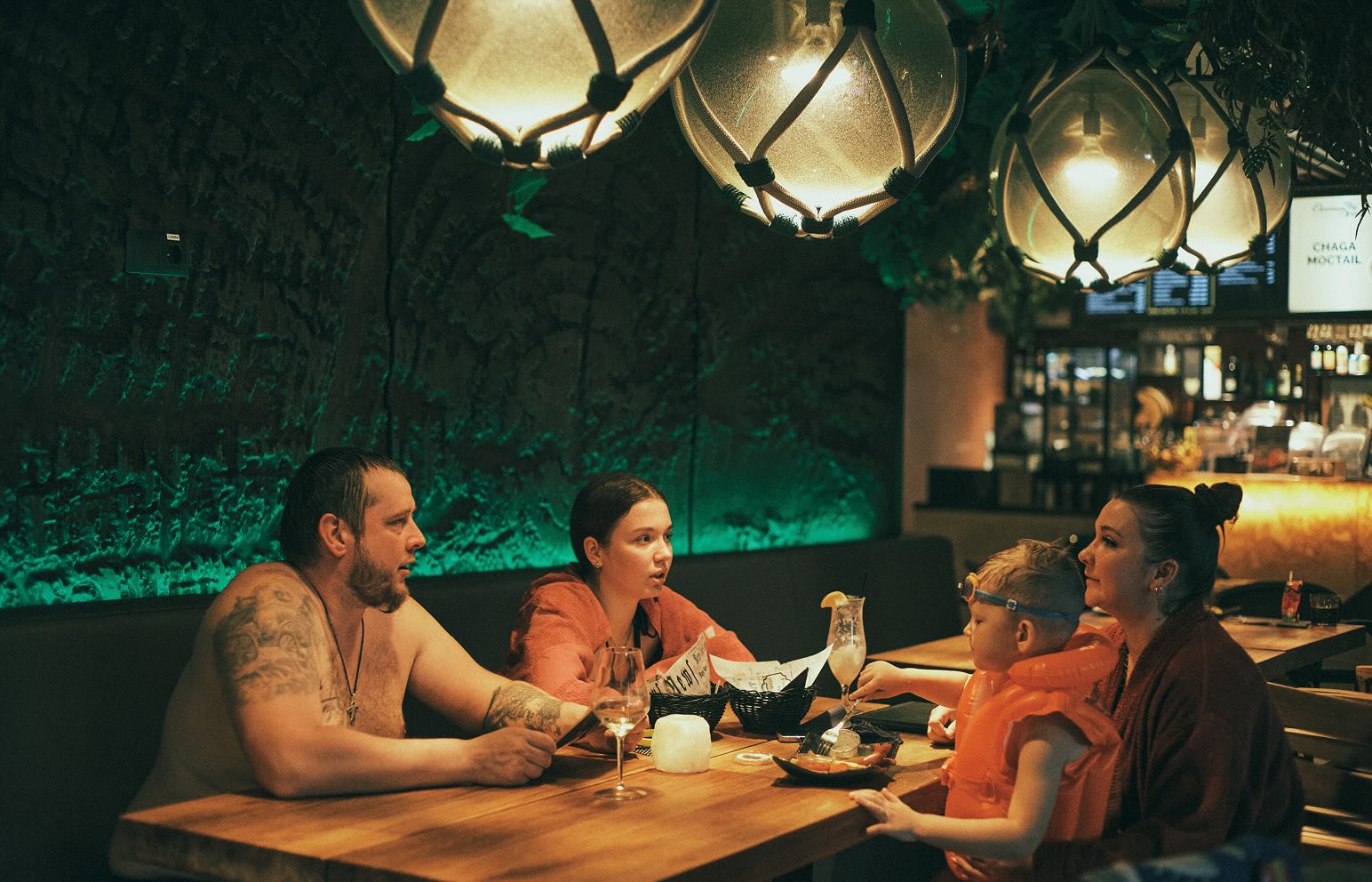 そう話しながら、街の中から郊外まで、いくつものサウナへ連れて行ってくれた。最初に足を運んだのは、街中にある20個以上のサウナを備えたスパ施設〈ElamusSpa〉だった。浴場の中にはレストランがあり、ととのった直後のバスローブ姿の人たちが乾杯している。ふらっと入ったアウフグースは、海賊がテーマだった。アウフグースマスターは音楽と照明に合わせて何度もロウリュをしながら、大きくタオルを振る。配られたウィスクで、知らない人同士叩き合い、冷水が容赦なくぶちまけられた。「気持ちいい」と同時に同じくらい「楽しい」とみんなが口にしていて、サウナが一つの娯楽として成立していた。