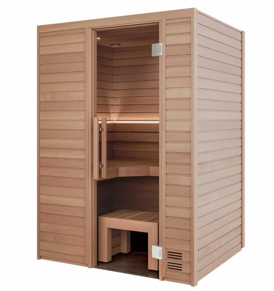 清水みさとさんプロデュースの、屋内用キャビンサウナ新モデル。最大の特徴はL字型ベンチで、広い座面設計により、寝転ぶ、足を伸ばすなど、自宅ならではの自由な姿勢でゆったりとくつろげる。木製パネルと耐熱強化ガラスを組み合わせ、洗練された佇まいと高い保温性を両立。電源投入から15〜25分で室温は約90℃に到達し、思い立った瞬間に本格的なサウナ体験が始まる。マンションや賃貸にも設置可能。