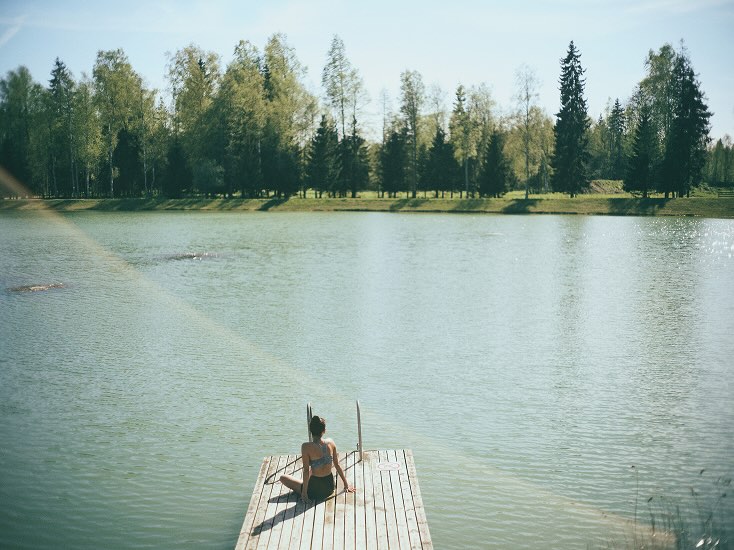 スモークサウナをでて、きらめく湖へ飛び込んだ。そのまま芝生に寝転ぶと、草花が背中に触れて、自然と一体化した。太陽が味方してくれた、エストニアの気持ちいい午後。