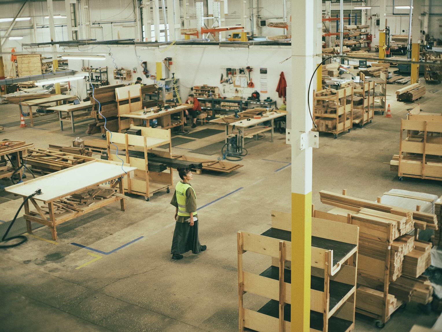 早速、工場長が工場内を案内してくれた。部位ごとに空間が区切られ、それぞれの工程で、それぞれの担当の人が作業をしている。木材を一つひとつ確かめるように手にとり、最新の機械も使われているけれど、最後に判断しているのは、人の感覚のようだった。素人目には違いがわからないほどの細かな部分で立ち止まる。