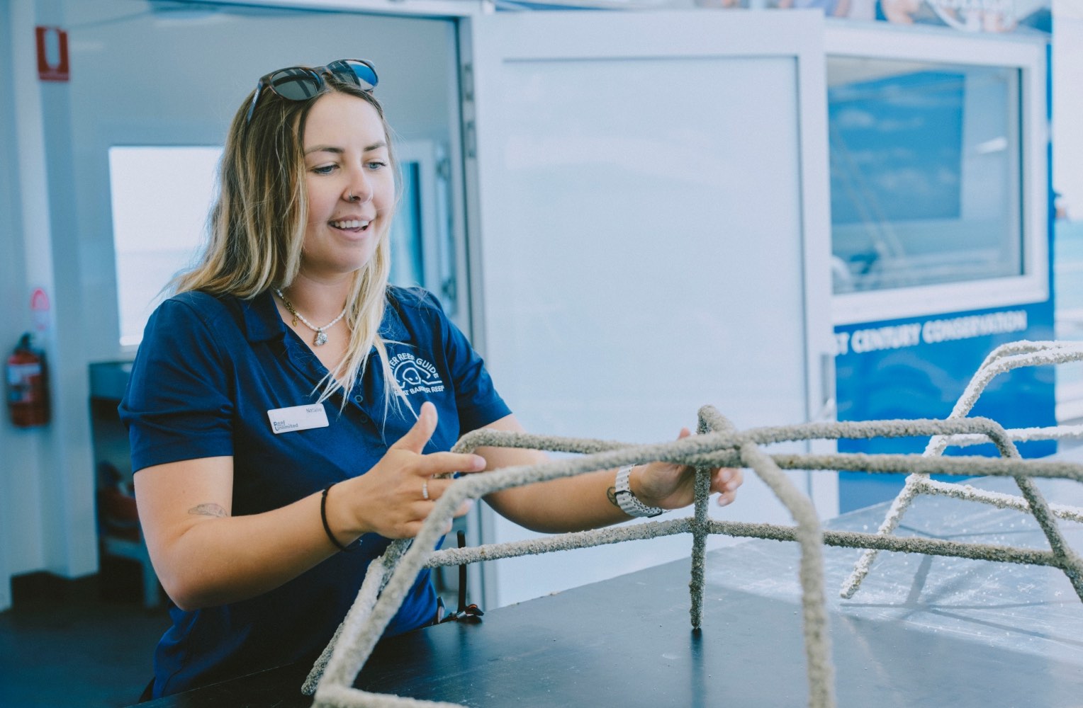 ポンツーンに戻ると、フィッシャー博士と入れ替わるように海洋生物学者のモニカさんが、現在グレートバリアリーフが直面している3つの問題について教えてくれた。