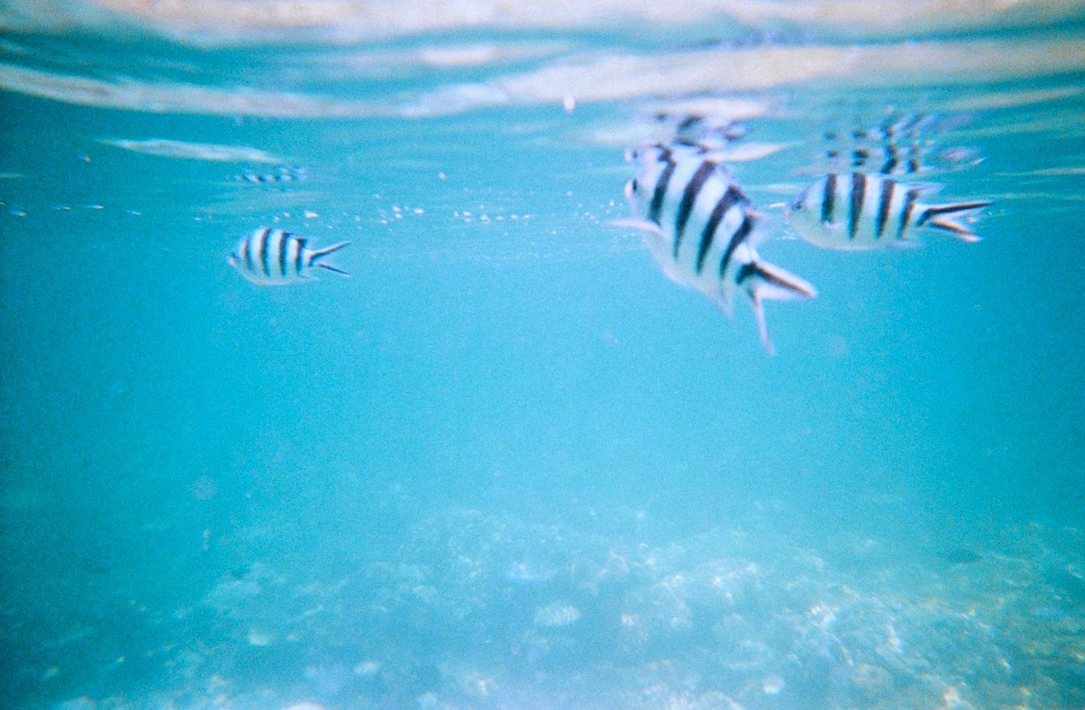 シュノーケリングで泳げる範囲が決まっていて、その範囲の中で自由に泳ぐことができる。海に入ると、ひんやりとした心地よい冷たさが全身を包む。息を整えながら顔を水中に沈めると、まさに海の楽園が広がっていた。