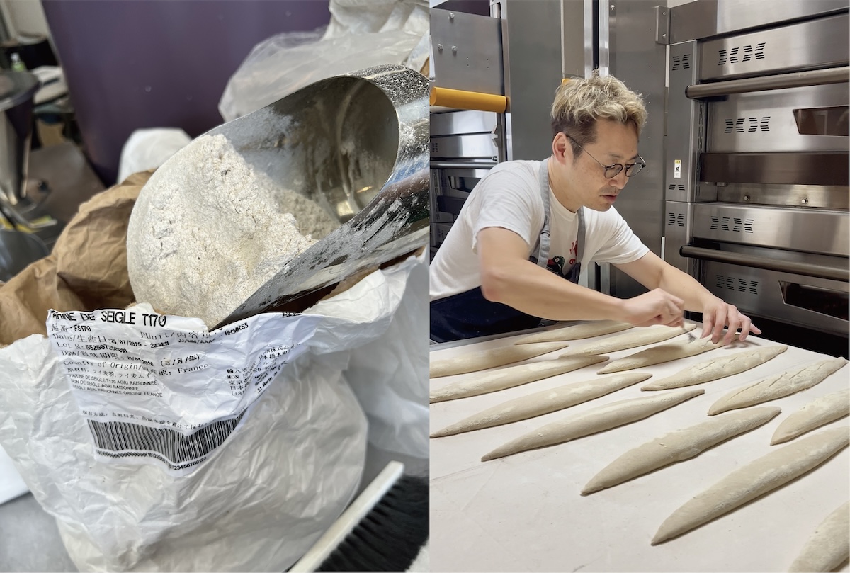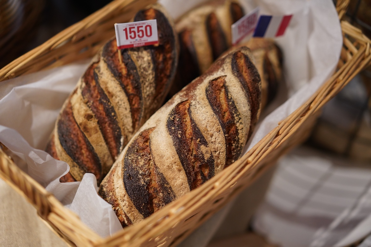 フランスの小麦は粒度が荒く製粉されているため、灰分(かいぶん、小麦胚芽や麦ふすまなどの部位に含まれるミネラル成分)が多く、旨味が残るのです。バゲットを作るのに向いていて、香ばしさと香りが強く、噛めば噛むほど余韻が残るのが特徴です。一方、北米産の小麦は粒度が細かく灰分含量が少ないため、食パンなど軽い食感のパンを作るのに向いています。決してフランス産だからよい、フランス産でないとダメというわけではなく、それぞれのよさがあります。